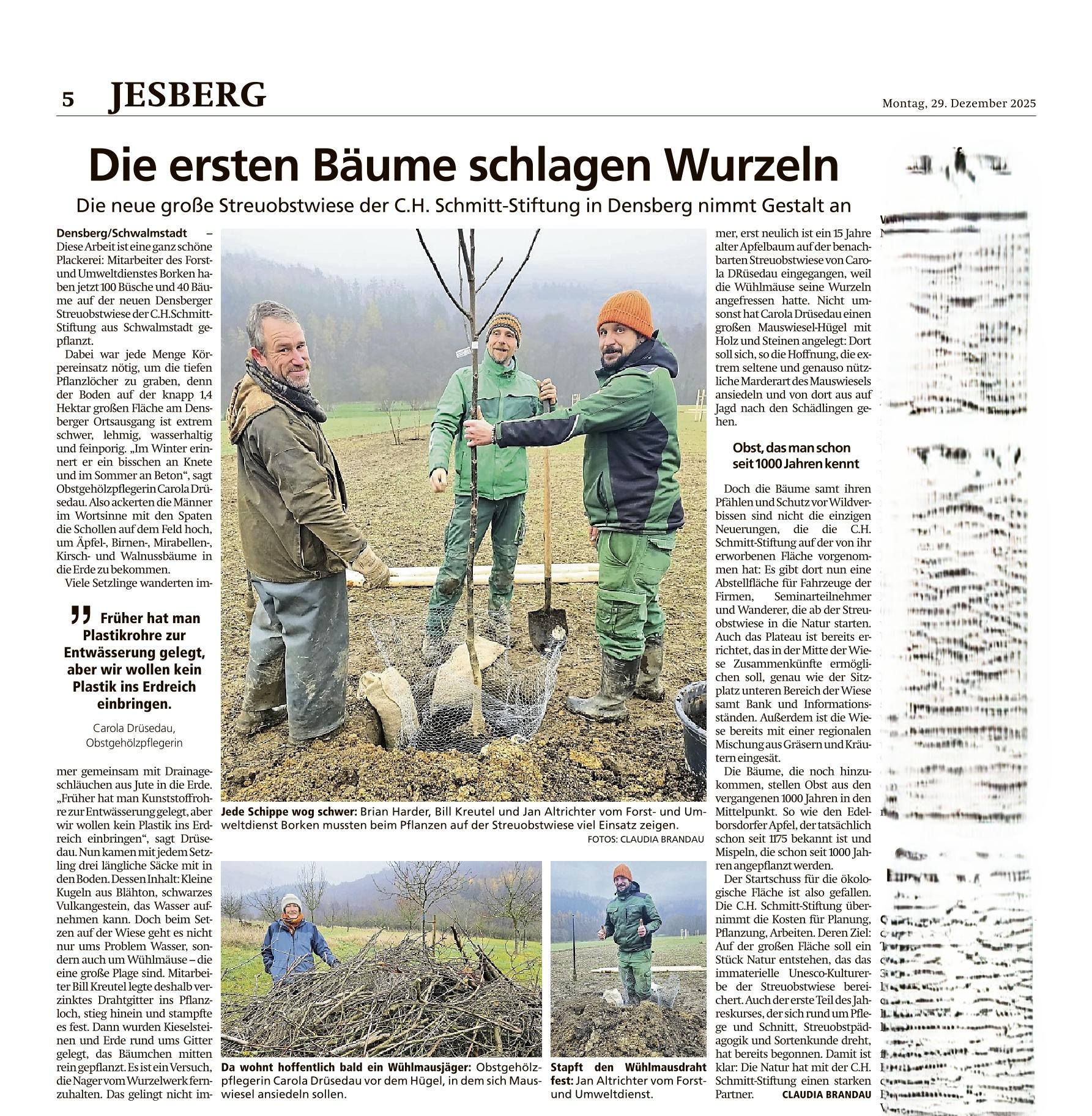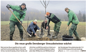 Auch wenn noch immer Früchte manchen Bäumen hängen: Die Ernte vorbei. Fünf Tonnen Äpfel wurden gesammelt, daraus über 400 Flaschen Apfelsaft gepresst, der im Preiswertkaufhaus erhältlich ist. Doch die Arbeit auf der Wiese geht weiter: (…)